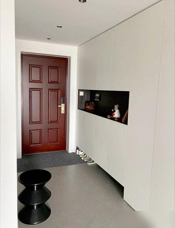 她的玄关柜太懂中国人了——不是那种露着鞋尖的开放式架,是关上门连鞋盒都看不见的封闭式柜。