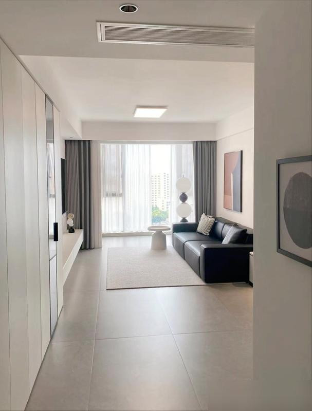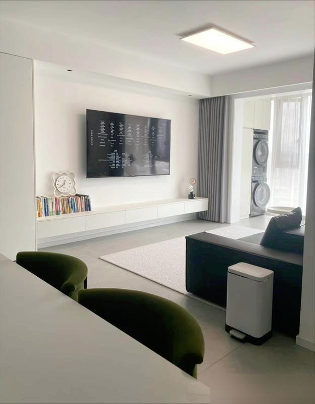你们有没有过刚装修完的“甜蜜负担”?我去年装婚房时,跟设计师拍着桌子说“要北欧风要高级”,结果装了满墙的几何石膏线、带抽屉的落地电视柜,还有整面墙的开放式书架。住了俩月就崩溃:石膏线的缝里全是灰尘,得拿棉签戳着擦;落地柜底下藏着猫毛和零食渣,蹲在那擦一次腰要酸三天;书架上摆的绘本和摆件,每天都要理一遍,不然看起来像被打劫了。后来看这位太太的家,白墙、悬空电视柜、空无一物的桌面,突然拍大腿:装修哪是“堆元素”,是“给生活腾地方”。